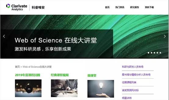 進入Web of Science在線大講堂,請訪問網址:https://clarivate.com.cn/e-clarivate/wos.htm